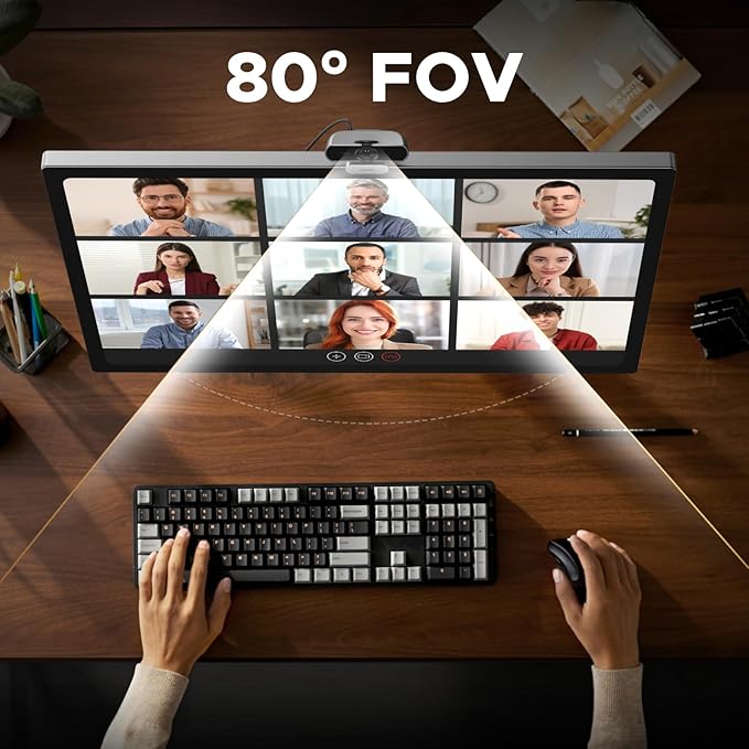 - Auto-Adjust Light&80° FOV: The web camera automatically adjusts color temperature and corrects low light for a flawless appearance. The 80° field of view (FOV) allows you to display more content in your video while maintaining a suitable close-up perspective