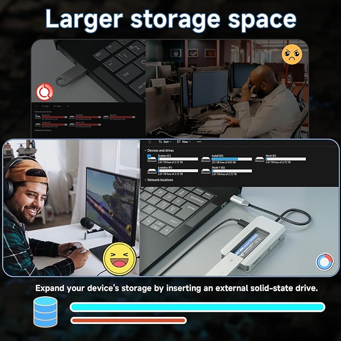 - USB-C Hub with SSD Port - What to do if your laptop's memory is not enough? Installing an SSD is too cumbersome for a laptop? Then try our USB-C hub with SSD connection! It supports up to 10Gbps M.2 PCIe SSD (M-Key/B&M Key) and 6Gbps M.2 SATA (B&M Key) with 4TB capacity. Expand your computer memory as you like – just use it!