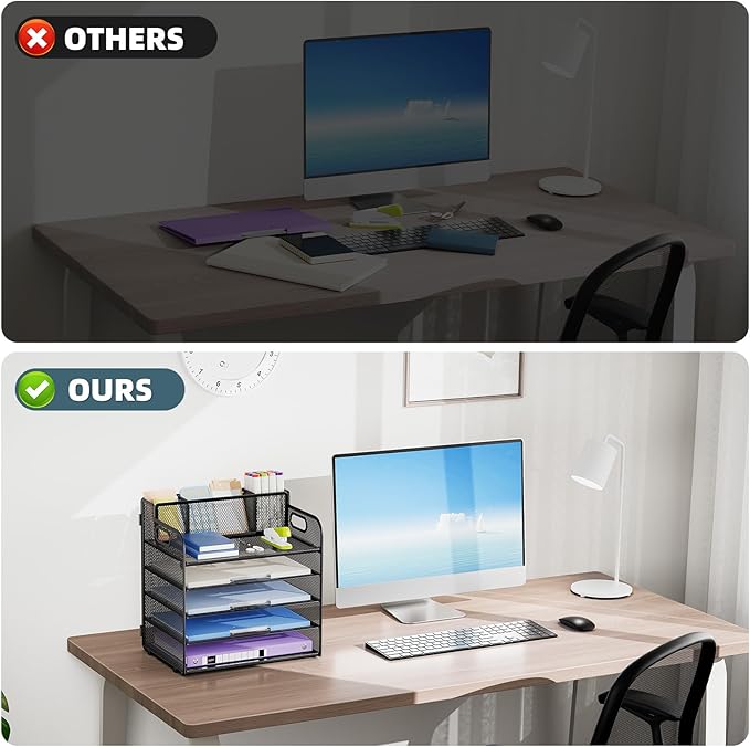 - 【PREMIUM QUALITY】The mesh desktop file organizer is made of lightweight durable metal mesh and reinforced with a solid steel frame that makes it have long-lasting strength and reliable performance.