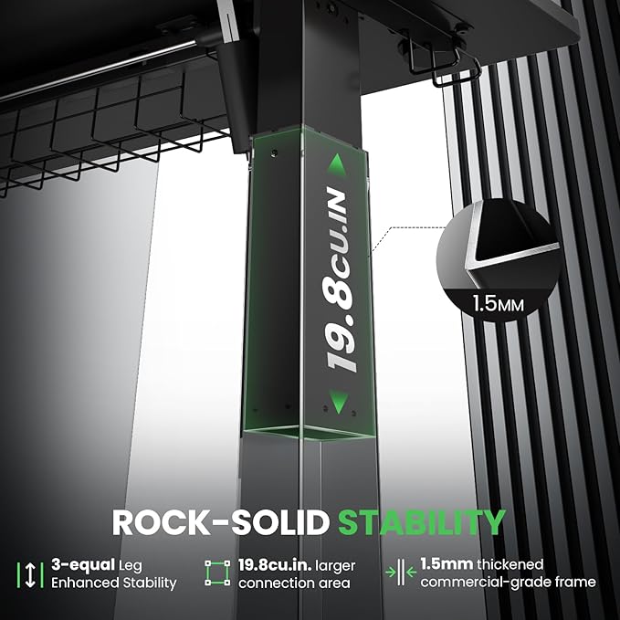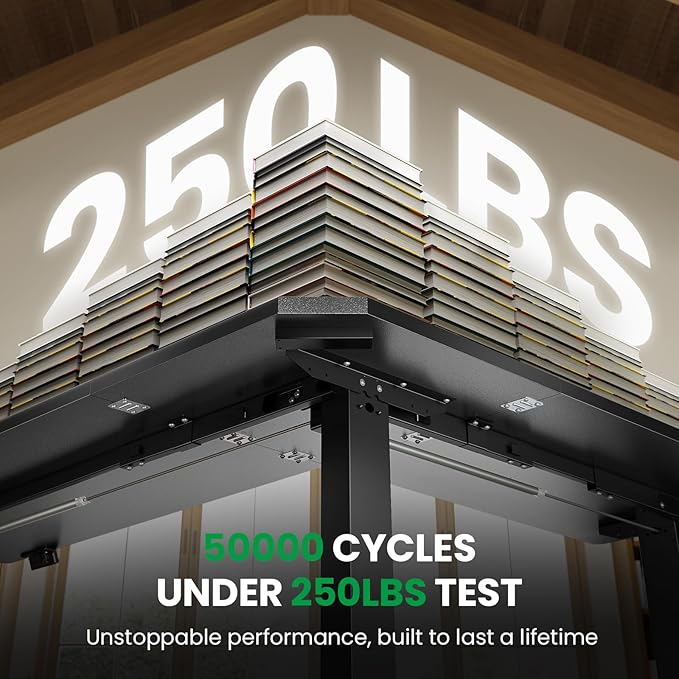 - 【Solid and Durable】The L-shaped electric standing desk features a durable and wear-resistant tabletop paired with three equal-length legs . During a 250LBs load-bearing test, the motor can smoothly perform 50,000 lifting and lowering cycles. SIAGO L-shaped standing desk — Redefining the lifecycle of office furniture through industrial-grade durability