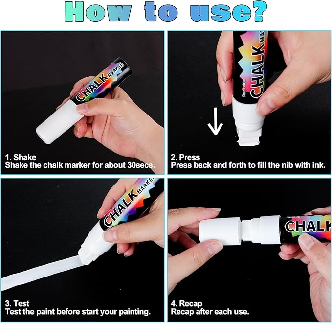 - Bright Vibrant Colors: 4 pack of white jumbo markers. Liquid chalk marker uses newly upgraded inks with more vibrant colors. Add style and get creative for Halloween, Christmas, holiday parties and more.