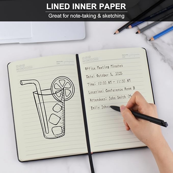 - Effective Design: Each notebook comes with an elastic clousure band, protecting the inner pages and personal privacy, also make the pages of hardcover executive notebooks well organized. One ribbon bookmark helps you locate the content. The lined inner paper make writing more neatly