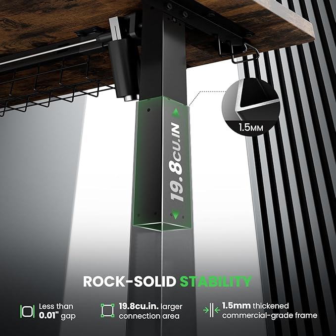 - Rock-solid Stability : Featured 19.8cu.in. larger connection area (at full height) with 1.5mm commercial-grade frame, SIAGO standing desk ensure stability and durability for long-lasting usage. Firm foundation for work at any height, eliminating any distractions from wobbling.