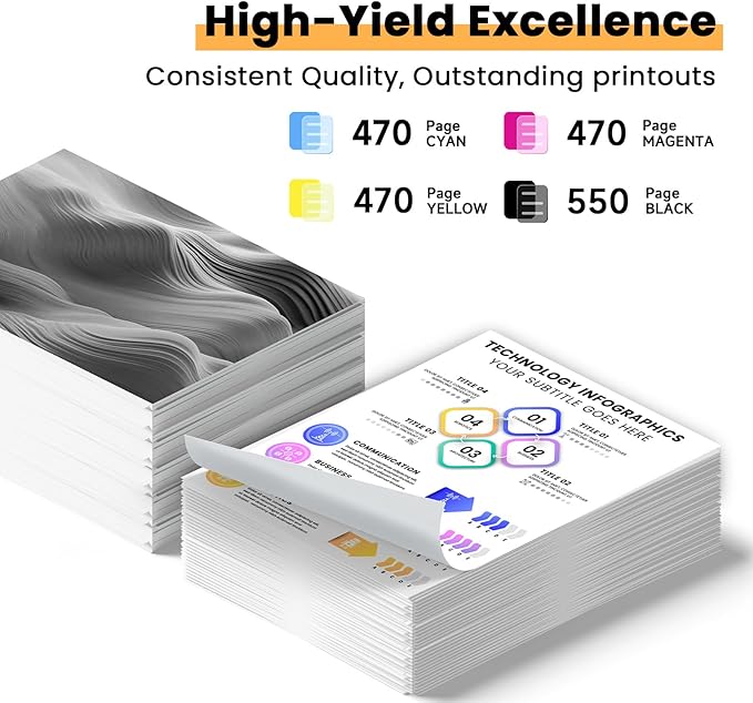 - Page Yield: The 202xl ink cartridges black work print up to 550 pages, each 202xl color ink cartridges work print up to 470 pages (5% coverage on A4 paper)