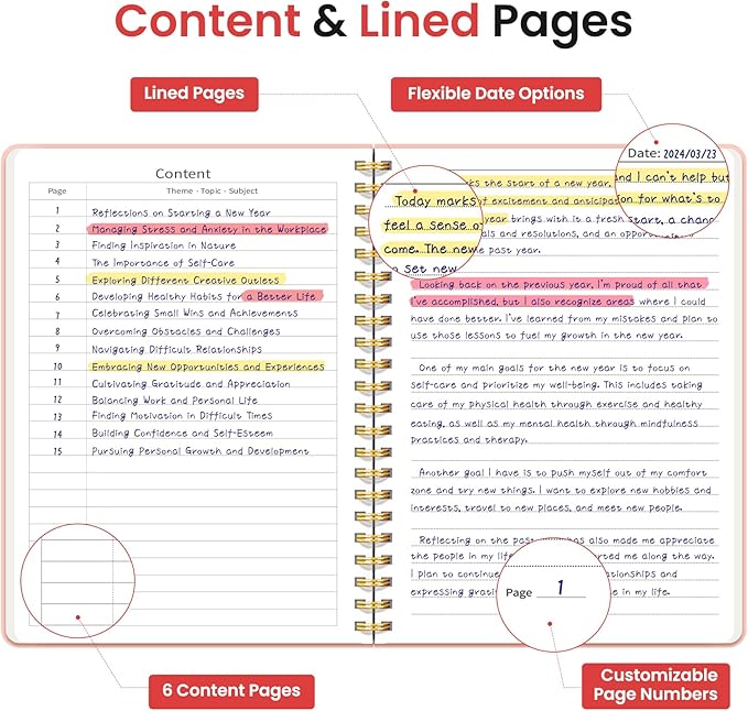 - High-Quality Paper: Each notebook is crafted with 100 GSM thick, ink-friendly paper, preventing ink bleed-through and ghosting. Compatible with various writing instruments, including ballpoint, gel, and fountain pens, every page includes a day header for effortless date tracking.