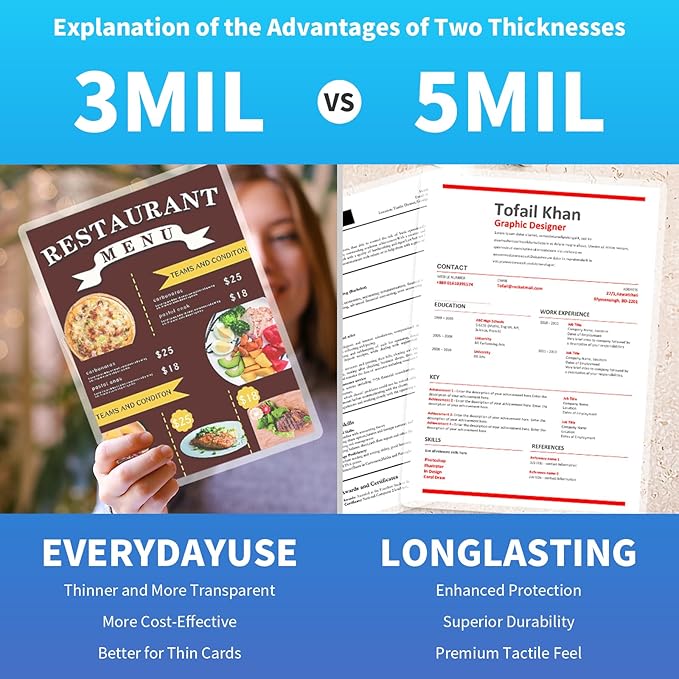 - ✅【Enhanced Protection 】: Better resistance to moisture, dust, and wear compared to 3 mil, extending document lifespan.
