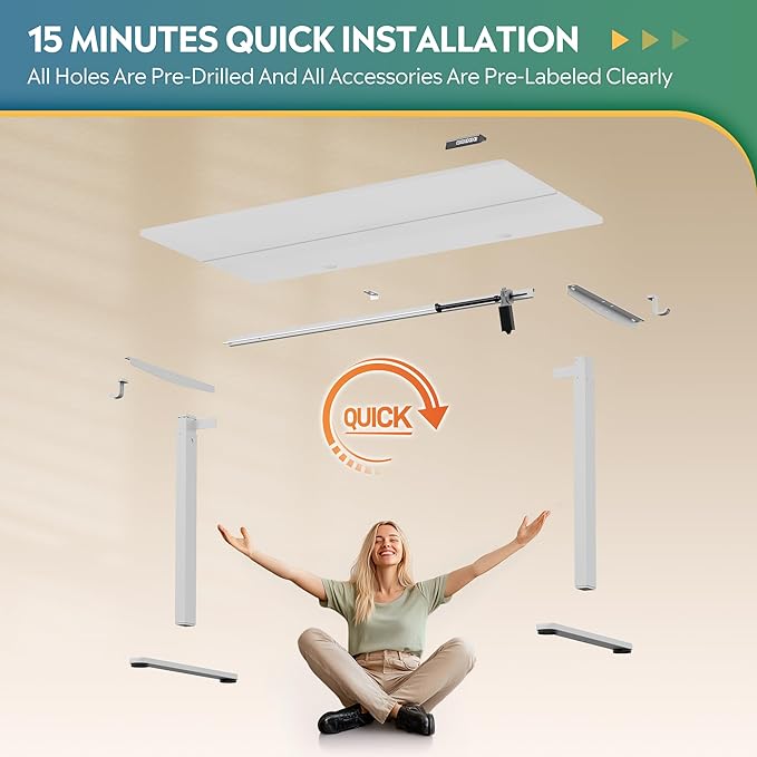 - 【Hassle-Free Installation】Setting up this standing desk is streamlined with less labeled parts and pre-drilled screw holes, detailed instructions. Please feel free to contact our U.S.-based product support team if you have any questions about desk assembly or product selection.