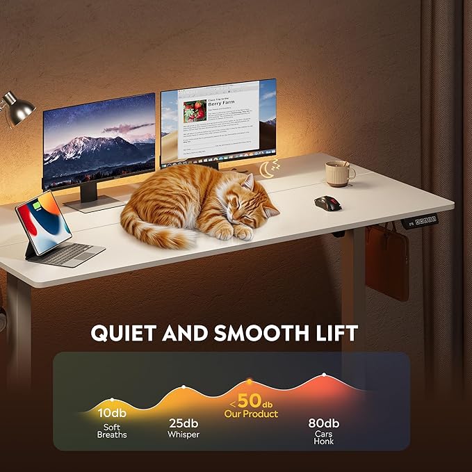 - 【Quite & Smooth Height Adjustments】Tri-motor system delivers whisper-quiet (<50dB) height transitions (28.35"-46.45") in seconds, eliminating manual adjustments and prevent desktop tilting. Standing desk adjustable height perfected for ergonomic shifts, ensuring buttery-smooth operation whether sitting or standing.