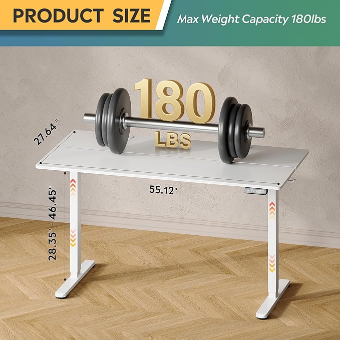 - 【Spacious 55 x 28 Desktop】The size of 55"W x 28"D surface (40% larger than standard 48x24" desks) fits triple 27-inch monitors + full-size keyboard with ample room for notebooks, speakers, and coffee. Engineered with ergonomic depth(28 Inch) to prevent hunching – perfect for architects reviewing blueprints, coders multi-tasking across screens, or creatives spreading out materials.
