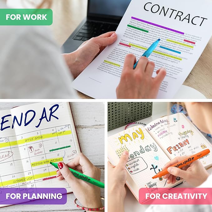 - No Bleed & Smear-Resistant Ink - Designed for clean, confident highlighting. Our quick-drying ink won’t bleed through paper or smudge while you write—keeping your notes neat and your hands stain-free, even when you're in a rush.