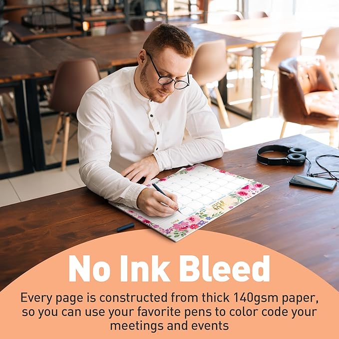 - Designed to Support You — Your calendar for desk is made of thick, 140gsm paper. This quality material prevents ink bleed from your favorite pens. You can also pin your large calendar to the wall through its two holes at the top so you can see your schedule from across the room