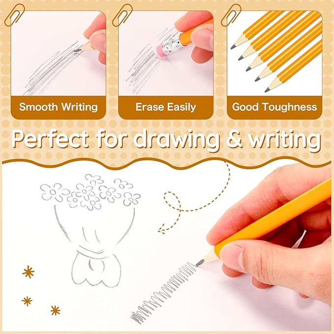 - Convenient and Easy to Use: designed keeping user convenience in mind, pencils with erasers arrive pre sharpened, so they're ready to use right out of the box; What makes them more convenient is the eraser tops, no need to carry extra erasers, making them suitable for quick note taking or creating art