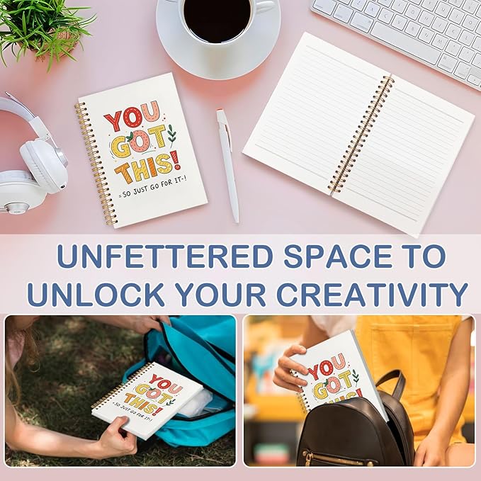 SNNDER You Got This Spiral Notebooks, Inspirational Journaling Notebook for Women Men, Motivational Journals for Writing, Beige Notebook for Note Taking, Employee Gifts Notebopoks, 5.5x8.3 Inch