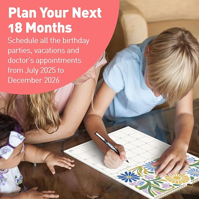- Stay on Track with Style — Choose from fun florals to classic blue to add personality to your calendar wall. Each month’s page features an exceptional design to keep things fresh. The burst of color from your July 2025 to December 2026 monthly wall calendar will inspire you to stay organized
