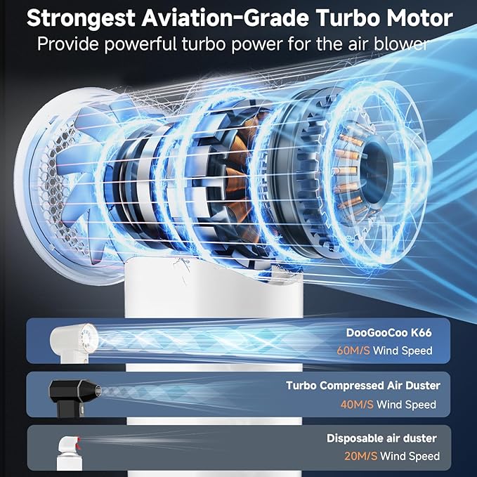 - [Best-Replace for Compressed Air Can] - Cordless reusable turbo air blower with 5 gear. Freely adjustable the speed, more convenient and durable, enhancing your cleaning experience; Moreover, it is also an environmentally friendly, energy-saving, and cost-saving cleaning product.