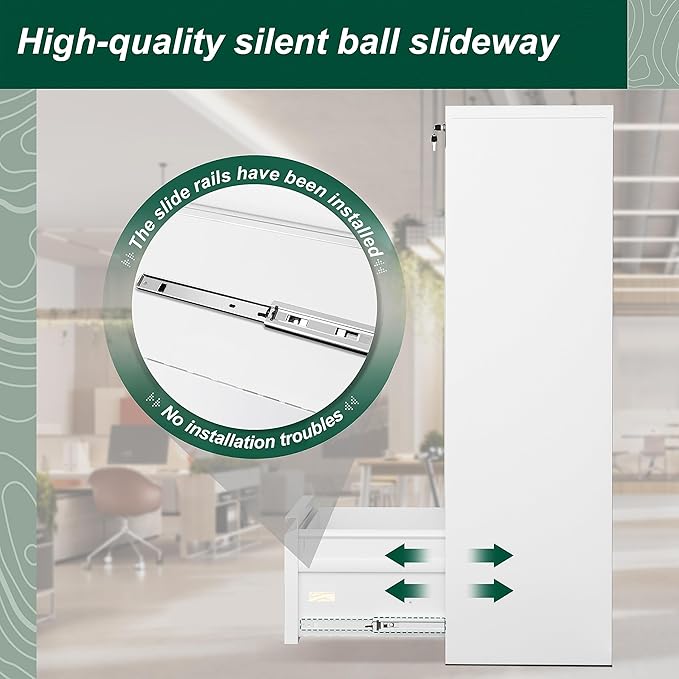 - ✔Easy to Assemble -- With ball bearing full extension drawer slides, the file drawers opens completely, allowing you to access the contents in the back of the office drawer cabinet easily and quietly. ★Kindly reminder★: The four drawer file cabinets will be easy to assemble with following the installation video. if you're still having trouble, we'd be happy to help, just get in touch!