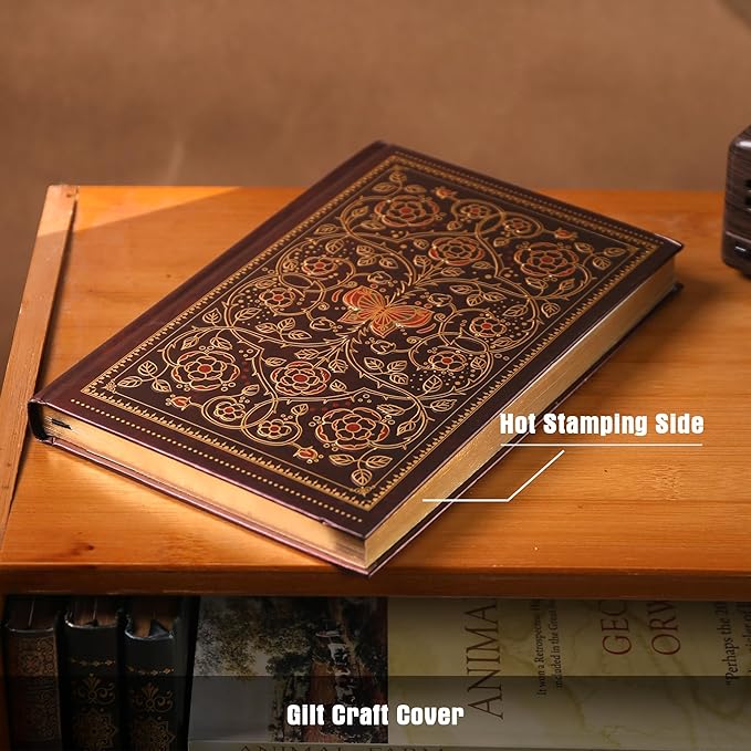 - Aesthetic Cover Journal: The cover is made of high-grade gilt embossing process, with delicate texture and three-dimensional touch, with vintage tone base, presenting low-key luxury aesthetic, which is suitable for daily use or as an exquisite gift for others. The gilt stamping details on the side enhance the overall sophistication and echo the gilt elements on the cover, highlighting the quality of the details and showing unique taste.