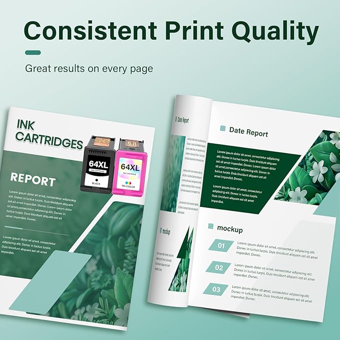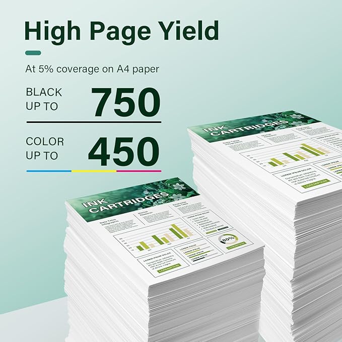 - High Page Yield: It yields up to 750 pages for each 64XL Black Ink and 450 pages for each 64XL tricolor combo pack at 5% coverage (A4e letter)