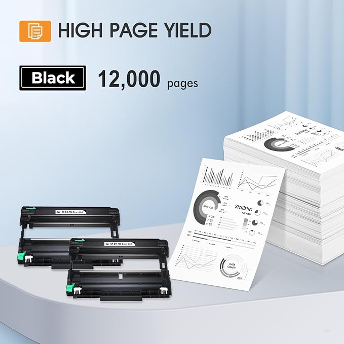 - Page Yield: 12,000 pages per DR730 DR-730 Drum Unit (Letter/A4, at 5% coverage)