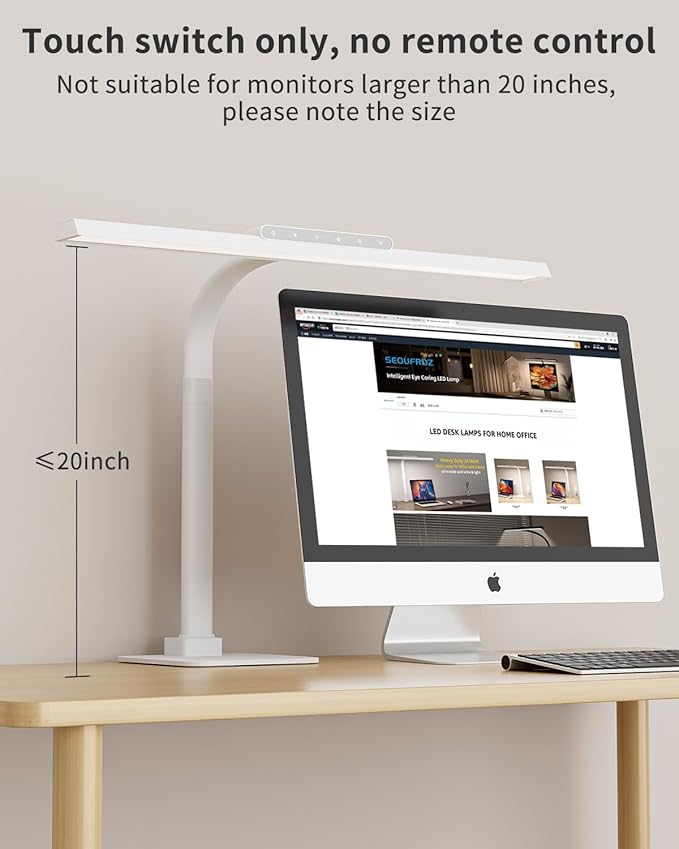 - Simple & Sensitive Control: Elevate your workspace with this smart touch desk lamp featuring auto-dimming technology that adapts to ambient light. Effortlessly adjust color temperature (3000K-6000K) and brightness (10%-100%) via the touch panel. The built-in memory function saves your preferences, while its sleek design makes it the perfect table lamp for desk setups