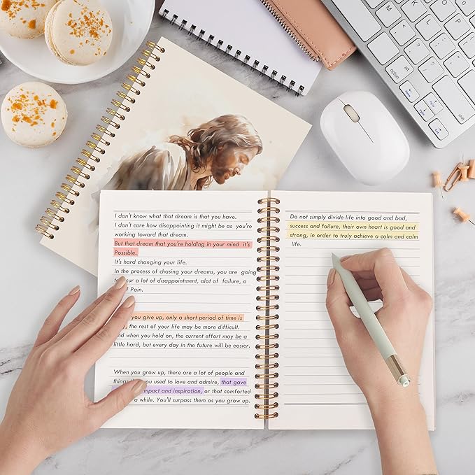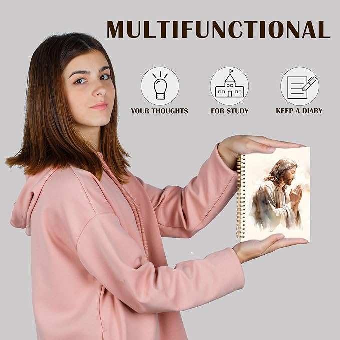 Qabliqo Christian Jesus Spiral Notebooks, Jesus Prayer Journals for Writing, Christian Journal for Women Men, Faith Based Gifts, Vintage Religious Notebook for Note Taking, 5.5x8.3 Inch