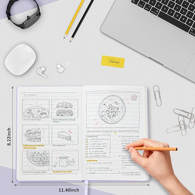 - 180° Lay Flat Design - The 180° lay flat design makes writing easier, reading more convenient, and taking notes more efficient. At the same time, the hardcover notebook is designed with an elastic closure band to ensure it is tightly closed to protect your content, and the inner paper will not be curled, and will be kept flat.