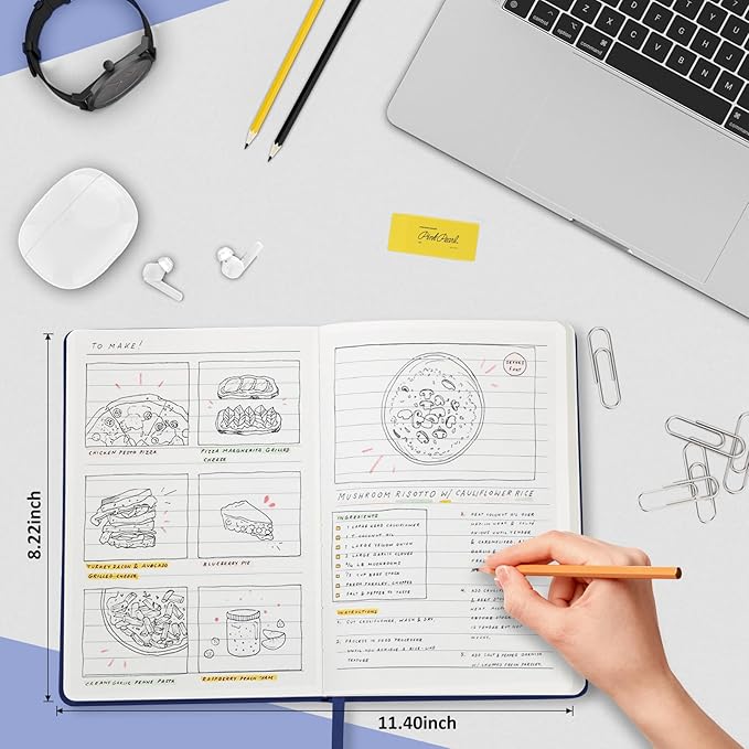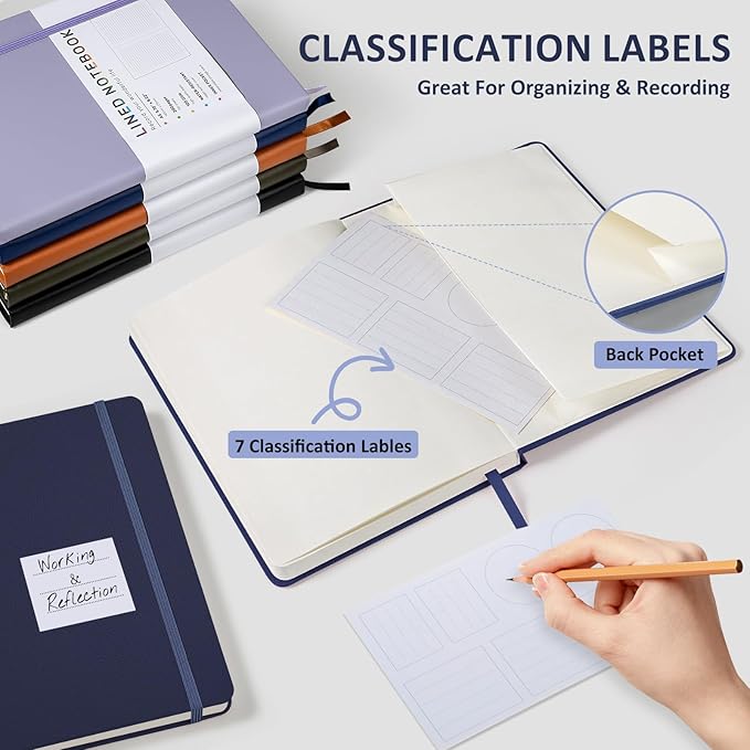 - 180° Lay Flat Design - The 180° lay flat design makes writing easier, reading more convenient, and taking notes more efficient. At the same time, the hardcover notebook is designed with an elastic closure band to ensure it is tightly closed to protect your content, and the inner paper will not be curled, and will be kept flat.