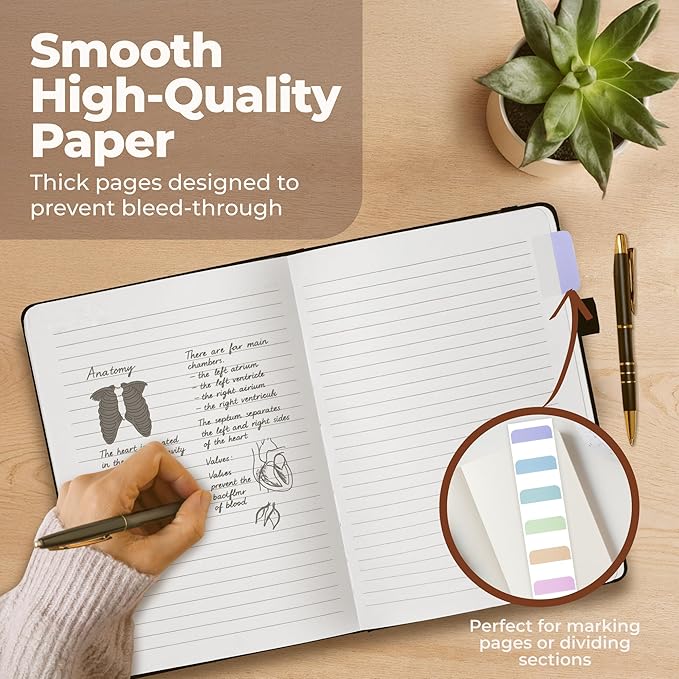 - THICK, SMOOTH, CREAM PAPER – NO BLEED, NO GHOSTING – Featuring 200 pages of high-quality thick paper, our smooth, off-white sheets let your pen glide effortlessly, with zero bleed-through—even with gel or fountain pens. Our college ruled notebook is ideal for long note-taking sessions, creative journaling, and meeting reflections.