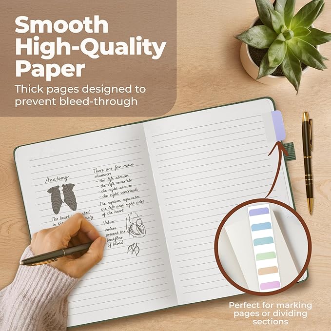 - THICK, SMOOTH, CREAM PAPER – NO BLEED, NO GHOSTING – Featuring 200 pages of high-quality thick paper, our smooth, off-white sheets let your pen glide effortlessly, with zero bleed-through—even with gel or fountain pens. Our college ruled notebook is ideal for long note-taking sessions, creative journaling, and meeting reflections.