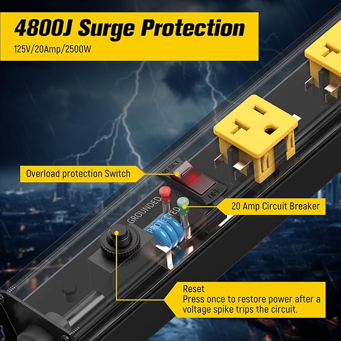 - Industrial-Grade Metal Housing - Sturdy construction with thick aluminum alloy metal housing, flame-retardant plastic panels make the power strip strong enough to with stand shock and heat. High wear resistance heavy duty power cord protects circuits from fire, impact or rust, and prevents dents and scratches