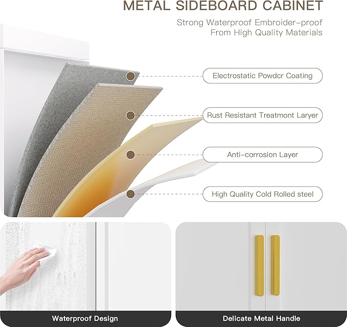 - Multi-functional Storage Cabinet:This sideboard buffet storage cabinet is beautifully designed to go with any home style. It could be a coffee bar in your dining room, a storage cabinet in your entryway, a buffet sideboard cabinet in your kitchen, or even a TV stand for storing media device