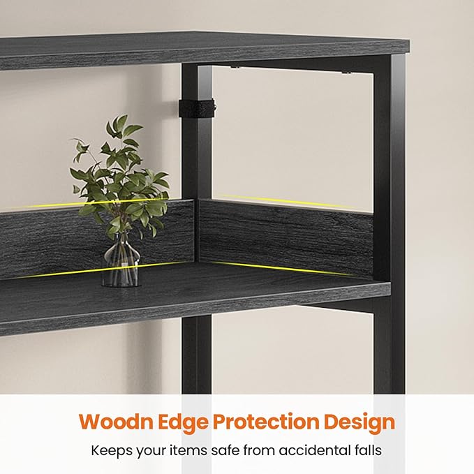 - Enhanced Stability:Equipped with adjustable foot, nd an anti-falling belt to enhance stability, prevent tipping, and ensure the safety of your family. Display shelf with 2 in baffles to prevent items from falling down