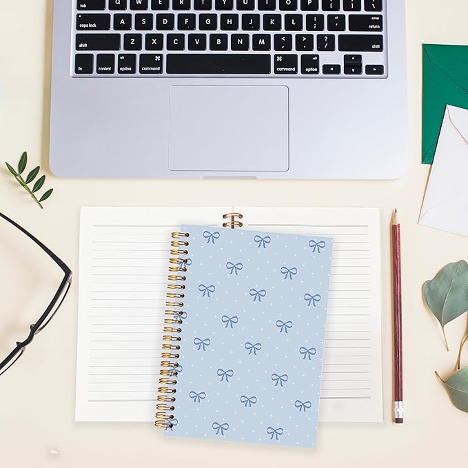 BearCake Coquette Blue Bow Notebook Journal, Preppy Bow Journal for Women Girls, Blue Cute Office Supplies, Girly Aesthetic Hardcover Spiral Notebook 5.5x8.3