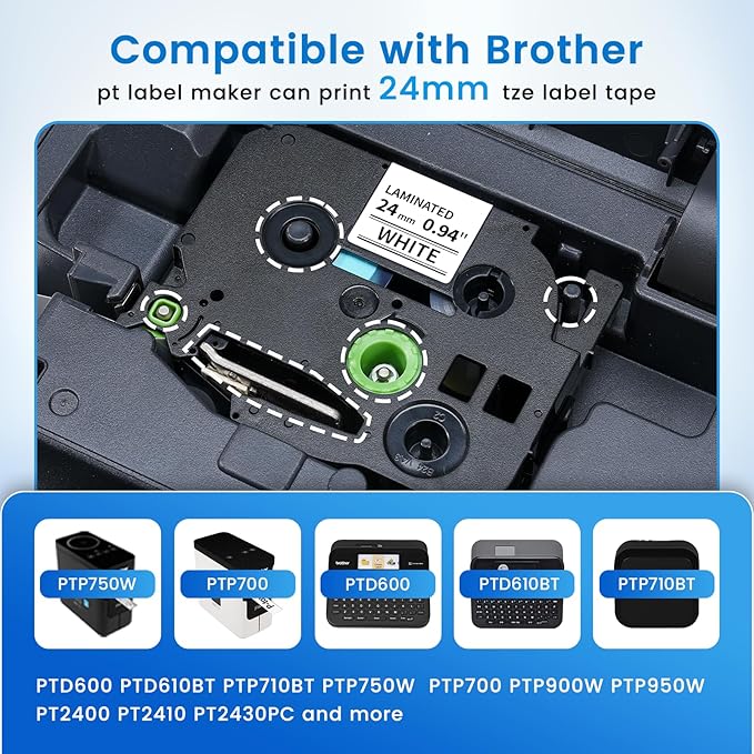 - Compatible with brother ptouch label maker (Max label width up to 24mm): PTD600 PTD610BT PT-P710BT PTP750W PTE500 PTE550W PTE800W PTH500LI PTP700 PTP900W PTP950W PT330 PT350 PT520 PT530 PT540 PT550 PT580C PT1400 PT1500PC PT1600 PT1650 PT2200 PT2210 PT2300 PT2310 PT2400 PT2410 PT2430PC PT2500PC PT2600 PT2610 PT2700 PT2710 PT2730 PT2730VP PT3600 PT7500 PT7600 PT9200DX PT9200PC PT9400 PT9500PC PT9600 PT9700PC PT9800PCN,etc.