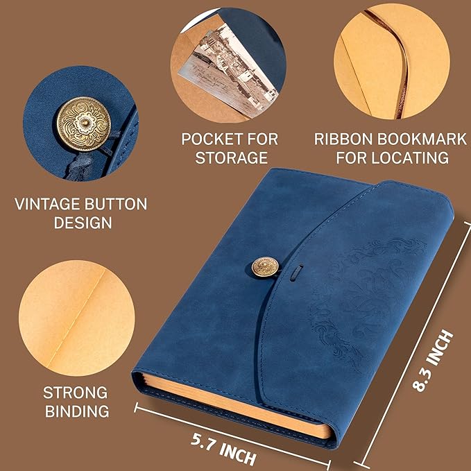 - COMPACT & TRAVEL-FRIENDLY: Ideal 5.9 x 8.6 inches size, compact enough to carry around but with plenty of space to write down thoughts or ideas. And leather scrapbook comes with a ribbon bookmark. Whether for daily travel notes, or book of shadows, this journal is a perfect mix of style and practicality.