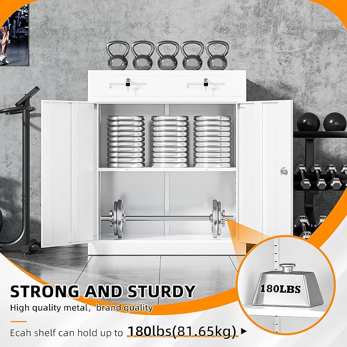 - 【Humanized and Practical Design】The shelves of the office storage cabinet can withstand a weight of 180 LBS, which is suitable for storing some heavy household tools.The size of the tool cabinet is 42"H* 36"W* 18"D, which is suitable no matter where it is placed. The appearance design of the cabinet is very concise and beautiful, with multiple colors and sizes. Durable and beautiful file cabinet have different storage spaces, making it easier for you to access them while working