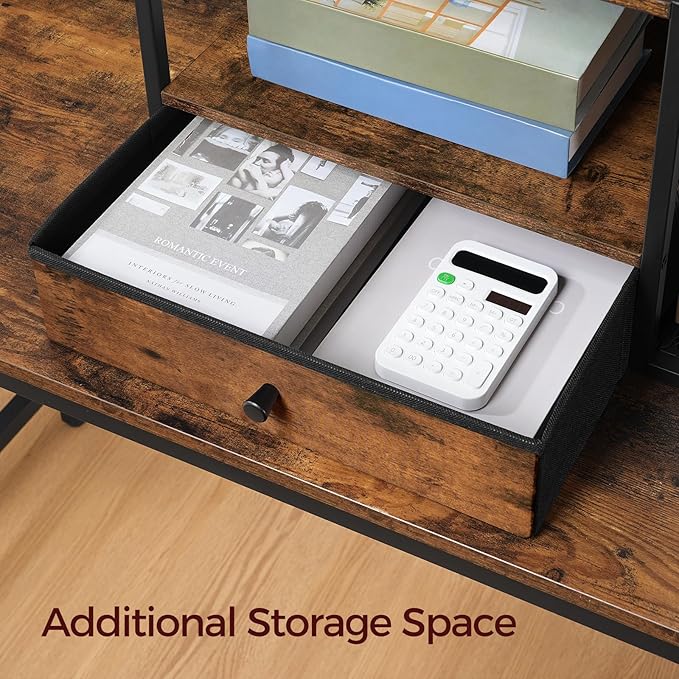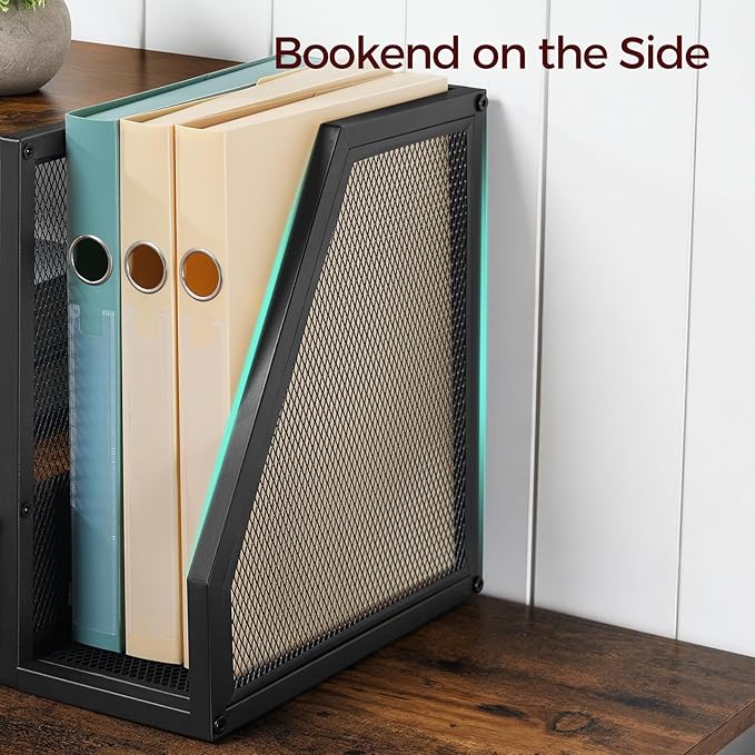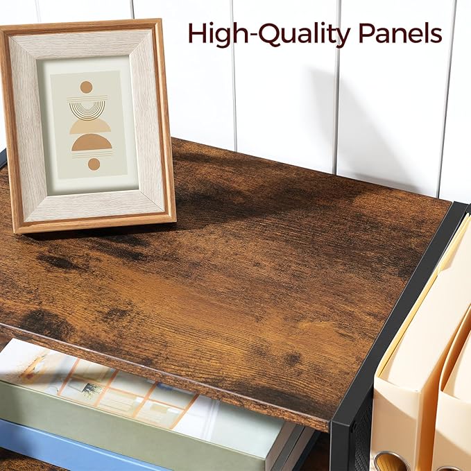 - Printer Table with Side Bookshelf: The small printer shelf includes a side bookend for the effective organization of books and documents. Black matte metal frame pairs with the retro wood grain shelves, enhancing an industrial-chic aesthetic that fits seamlessly with your home office