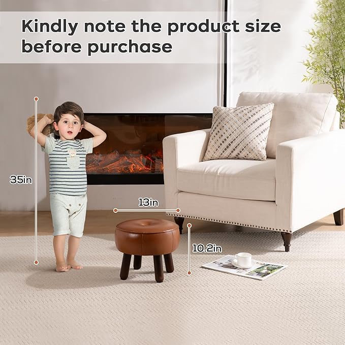 - 【Anti-Slip Design】- These leather foot stools small ottoman rubber legs come with dedicated felt pads to prevent scratches on floor and keep it from sliding.Wood leg with non-slip felt pad is quiet when moving, and can avoid leaving scratches on floor.The small footstool is perfect for small spaces and is compact enough not to get in anyone's way.