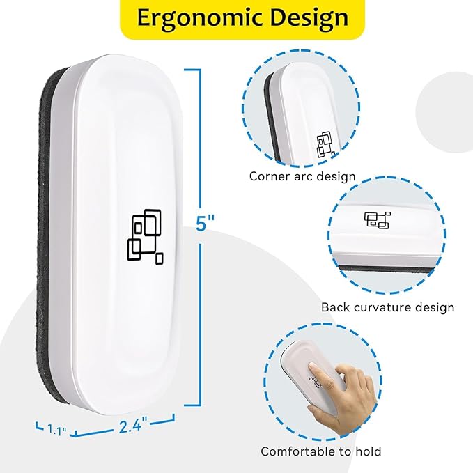 - Ergonomic Comfort: The curved, ergonomic design fits comfortably in your hand, reducing strain for a smooth, comfortable whiteboard cleaning experience.