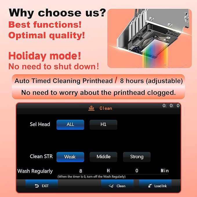 • ❤️ innovative anti-blocking technology, say goodbye to printing troubles: Equipped with 3-in-1 white ink cycle, mixing, filtration system and automatic cleaning and moisturizing device, to ensure that the nozzle is permanent and smooth, to avoid blockage and affect the work.
