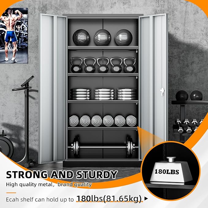 - 『4 Adjustable Shelves』: Tall storage cabinets with 4 adjustable shelves and 2 door to accommodate items of all sizes. Garage cabinets and storage system with lock picking to secure valuables, with two keys.