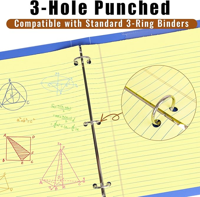 - 3-Hole Design: 3 pre-drilled holes on the left side of the lined note pads for easy insertion into a standard 3-ring binder to keep school and project notes organized