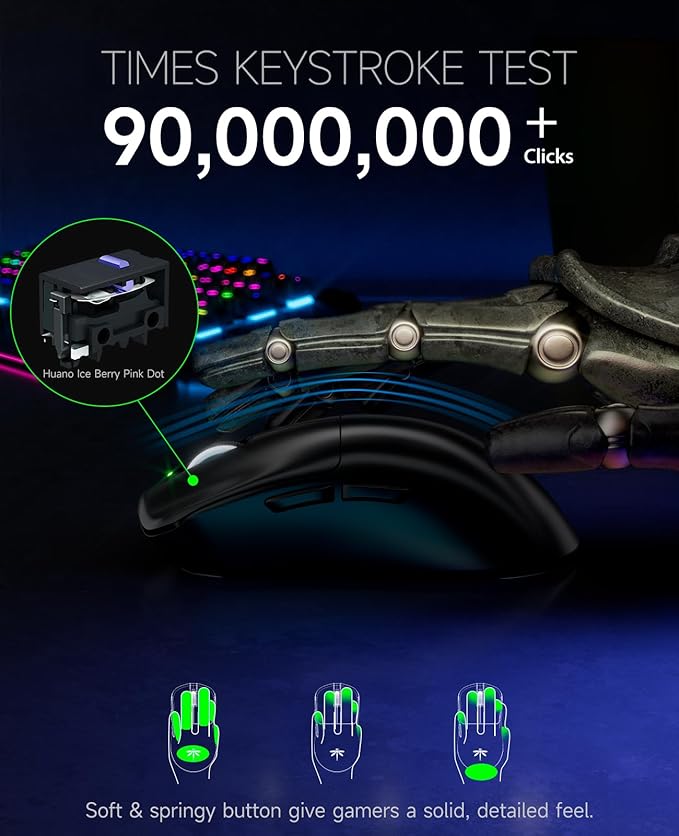 - Professional Gaming Mouse: Gaming Mouse features 26,000 DPI, over 650 IPS, 50G accelerator. Paired with 4K receiver(sold separately), an ultra-responsive 4000Hz polling rate plus high-precision PixArt PAW3395 sensor — quadrupling traditional 1000Hz mice for near-zero latency and ultimate tracking accuracy.