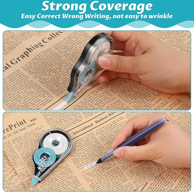 - 【Left-handed or right-handed use】 Ergonomic shape and comfort grip provide a secure hold for long correction tasks. These cute correction tapes can bring you a smooth operation hand feel, which can cover your handwriting nicely and quickly, you don't need you wait for it to dry, providing you with comfortable and neat use experiences