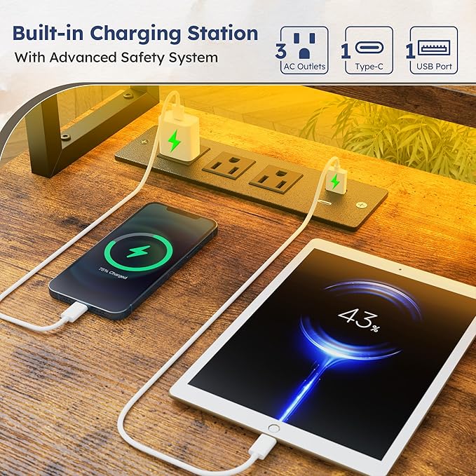 - 【Premium Accessory Package】Integrated charging ports and power outlets deliver effortless device charging, while the ergonomic monitor stand reduces neck strain. This standing desk with drawers combines practical power access with body.
