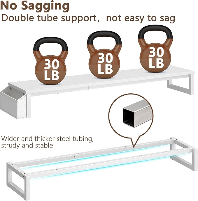 - 【Added More Longer】The dimensions of the desktop riser is 41.5"L X9.3 "D X 5.3"H. The extended desk monitor stand can easily accommodate dual 27'' displays,even two 23'' monitor and one laptop. This is an ideal choice when you need multiple computers to work together.