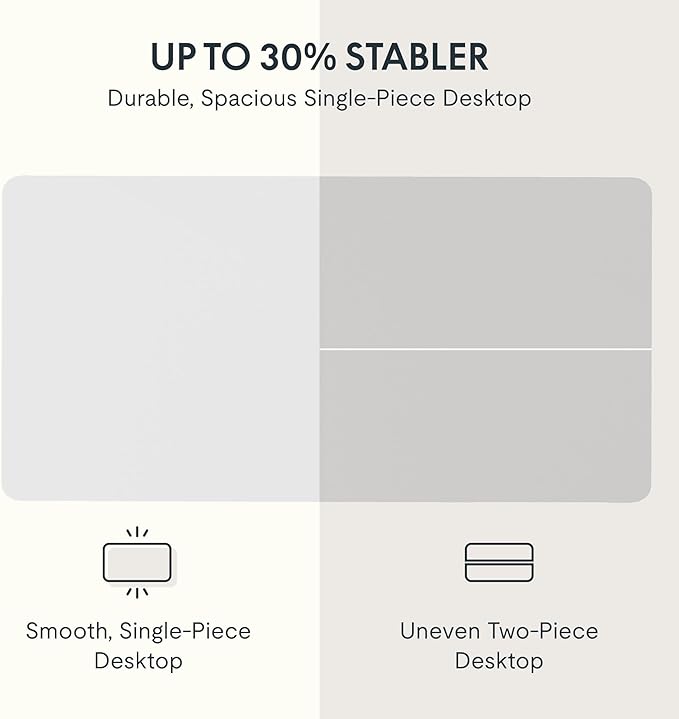 - AMPLE WHOLE-PIECE DESKTOP: With its one piece eco-friendly desktop, this standing desk provides plenty of room for your computer setup, documents, and accessories, creating a well-organized and productive work environment. Due to hand measurements, desktop dimensions may vary slightly by 0 to 1”.