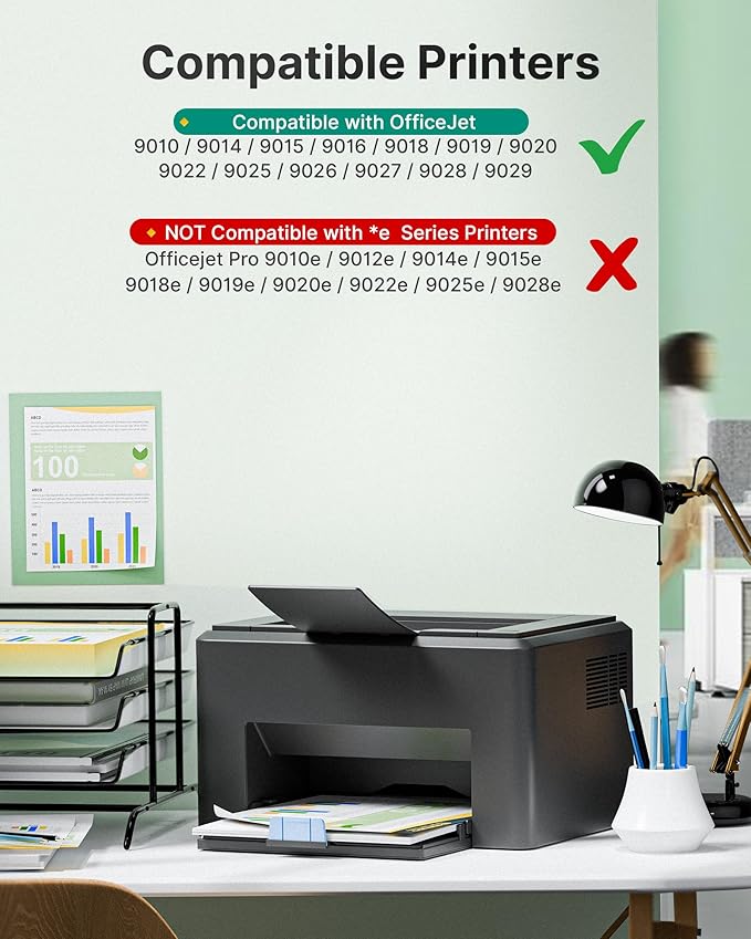 - Note: SHEENGO 962xl ink cartridges combo pack are Incompatible with *e Series Printers and with HP+ Service , Incompatible with OfficeJet Pro 9010e 9012e 9014e 9015e 9016e 9018e 9019e 9020e 9022e 9025e 9026e 9027e 9028e 9029e.