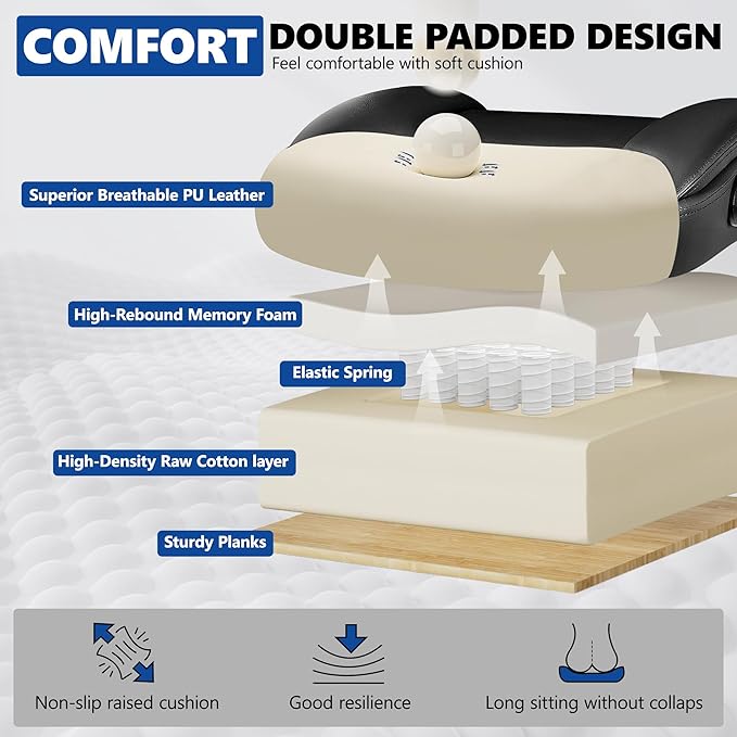 - Premium PU Leather:Crafted with high-quality PU leather that's easy to clean and built to last. This office desk chair features waterproof material with a smooth, breathable surface—perfect for your comfy office chair needs. Features high-density foam cushioning with natural leather grain for a premium executive look.