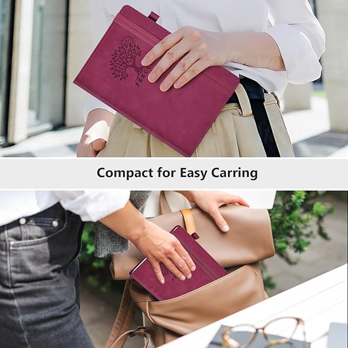 - 【FUNCTIONAL DESIGN FOR ORGANIZATION】:Stay organized with 2 elastic closures to keep your notebook securely shut and 3 colored ribbon bookmarks for easy page navigation.The A5 size (5.9"x8.5") fits comfortably in bags, making it ideal for on-the-go professionals, students, or creatives.